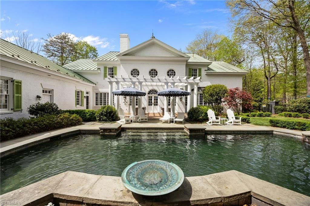 Experience the sophistication of this showcase home located in highly sought-after, Northern Shores of Lake Jeanette. A William Poole designed Georgian Revival, redefines elegance. Step outdoors, to a professionally curated oasis- saltwater pool, spa, tranquil water features, fire pit, & trellis-covered patio. Inside, an elegant 2-story foyer & living room await, while natural light fills every wall. Chef's kitchen features custom cabinetry, marble counters, high-end appliances, double dishwashers & ovens. Main-level primary suite offers private pool access while spa-like bath provides steam shower, jetted tub, bidet & dual primary closets. A grand study awaits w/ built-ins, gas logs, & fridge. Media and hearth rooms offer additional gathering spaces. Hardwood floors, crown moldings, & elegant entry staircase adds an abundance of luxury. 2 laundry rooms, a 2nd staircase, en-suites in each bedroom. Third-floor boasts sauna, fridge, gym flooring & plush carpet- very versatile!