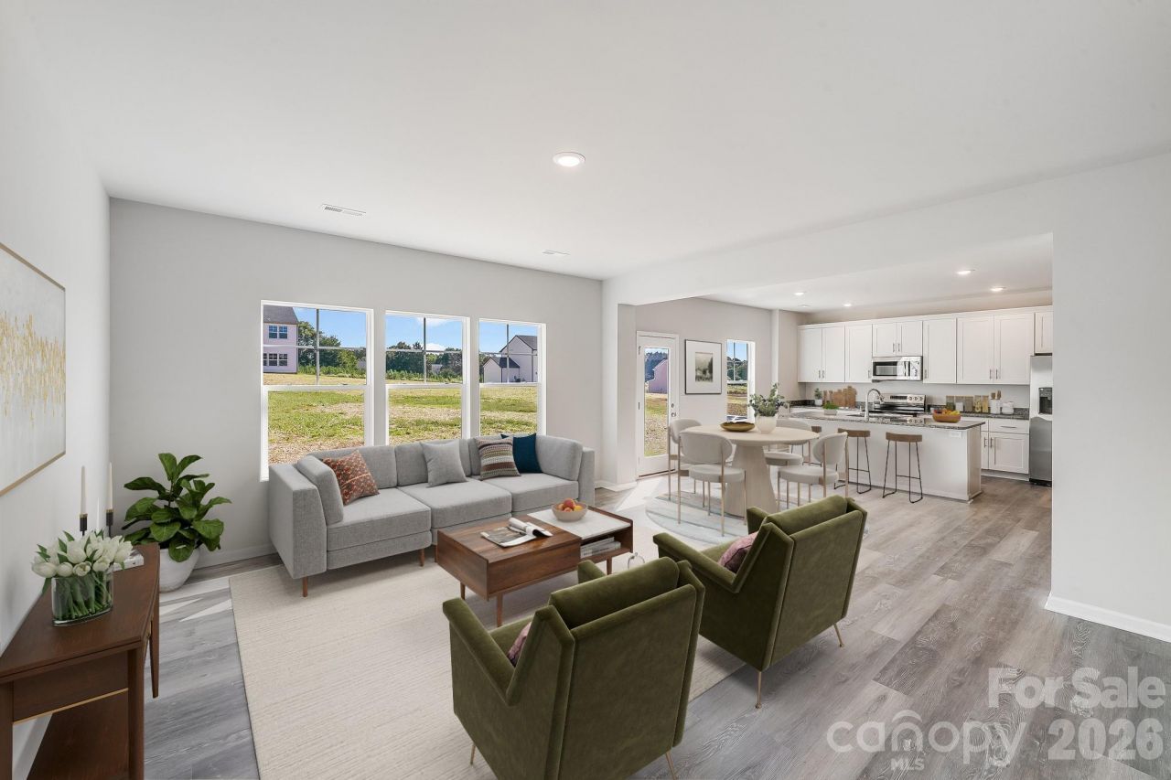 Welcome to this inviting two-story, 3-bedroom, 2.5-bath home offering the best of modern living?perfect for first-time buyers or those looking to upgrade to more space. Situated on a generous 0.54-acre lot, this property combines privacy with the convenience of quick access to I-40. The main level is designed for comfort and flexibility, featuring a spacious great room with three large windows overlooking the backyard and filling the space with natural light. The kitchen is a chef's delight, showcasing white cabinetry, granite countertops, a large island with a breakfast bar, a pantry, stainless steel appliances, and a dedicated dining area ideal for casual meals or entertaining guests. Upstairs, the primary suite offers a roomy walk-in closet and a private bathroom with dual sinks and granite countertops. Two additional bedrooms share a full bath with matching finishes, providing comfort and style for everyone. Additional highlights include a 2-car garage with an opener, a covered front porch perfect for relaxing outdoors, and a move-in-ready home with a versatile layout and ample space to grow?a perfect place to start your next chapter.