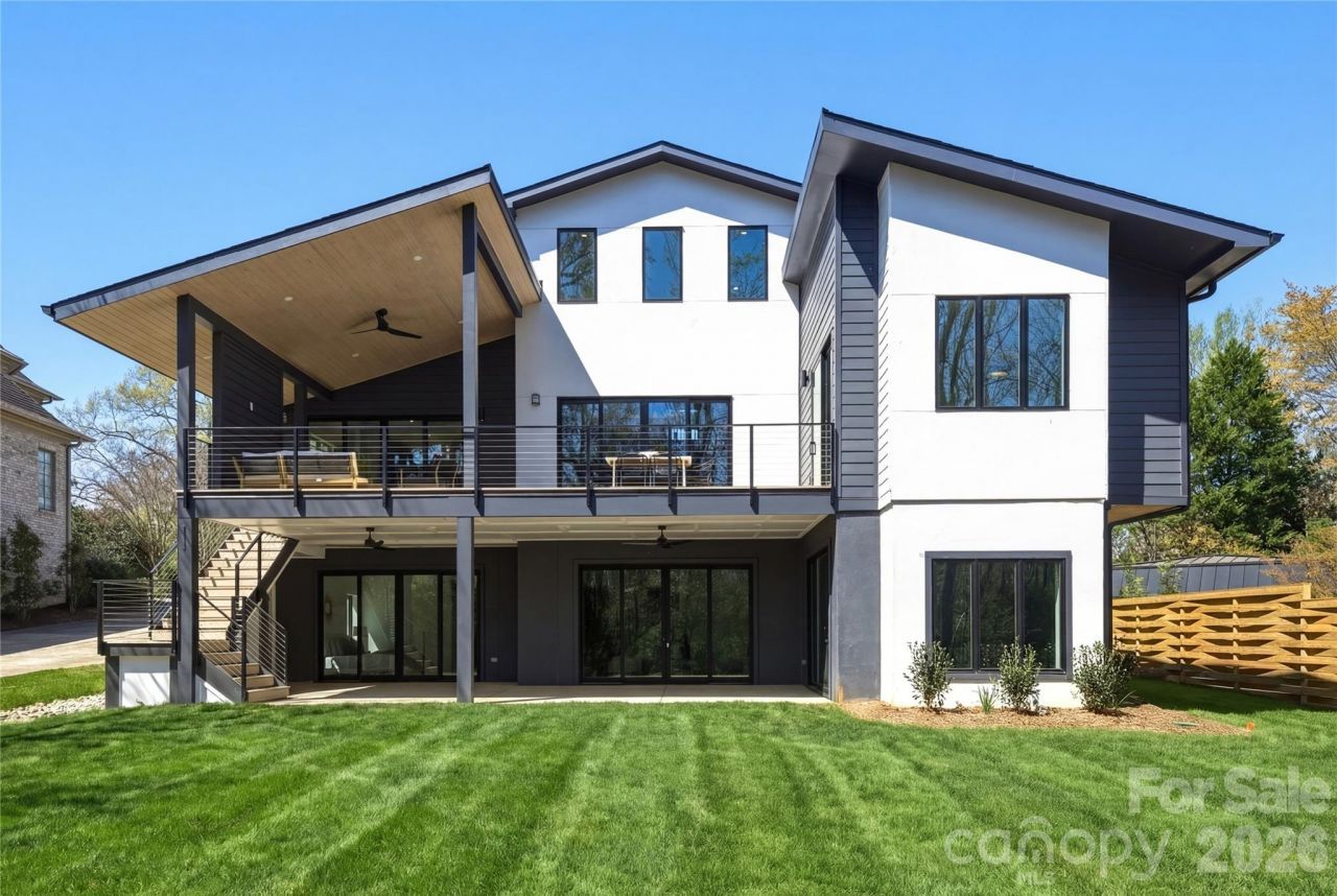 A fresh take on modern living, this stunning new home sits on an oversized lot with peaceful pond views in one of Charlotte's most desirable neighborhoods. The setting offers a rare mix of privacy and space, with plenty of room to create your dream outdoor retreat. Designed to balance privacy with exceptional livability, the property offers generous outdoor space?perfectly suited for a future pool and a variety of entertaining possibilities.Spanning approximately 5,500 square feet, the thoughtfully designed floor plan flows effortlessly, creating an inviting atmosphere ideal for both everyday living and hosting. Dramatic vaulted ceilings, premium appliances, a striking Isokern fireplace, and a dedicated wine cellar elevate the home's modern sophistication. Outside you will enjoy multiple covered and open-air spaces that make indoor-outdoor living feel natural and easy?perfect for everything from quiet mornings to lively gatherings. All of this is set in an unbeatable in-town location, close to top schools, Uptown, great restaurants, shopping, and greenways. An optional elevator adds flexibility for the future, with the added possibility for future owners to access from Wrenwood Lane.