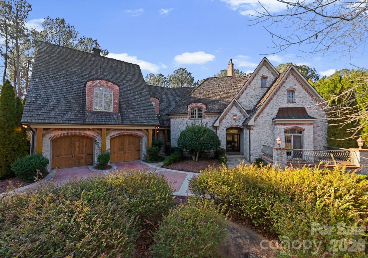Stunning French Country Estate on three (3) combined golf course lots in prestigious Verdict Ridge, overlooking the iconic 16th Green. Natural stone exterior, brick detailing, and copper accents exude timeless charm. Wellness-focused features include an indoor HydroWorx Sports Therapy pool, Fitness Room with pro-grade flooring, Sauna, and Steam Bath - a private health retreat. Gourmet Kitchen with Viking range, stone hood, mural backsplash, wine bar with copper sink, and pass-through to golf-view Sun Room. Great Room with beamed/coffered ceilings and floor-to-ceiling stone fireplace. Main-level Primary Suite with multi-tiered tray, European-style fabric wall coverings, & private study. Expansive walk-in attic storage areas, perfect for additional bedrooms or bonus rooms (see example in attic space expansion PDF file attached). Enjoy radiant heat floors, Artisan-inspired murals, flagstone terraces, putting green, Generac whole-house standby generator (automatic backup power), natural fenced area for furry loved ones, oversized garage with golf cart bay, and whimsical playhouse in garage apartment above. A rare blend of old-world charm and modern amenities - luxury meets lifestyle.