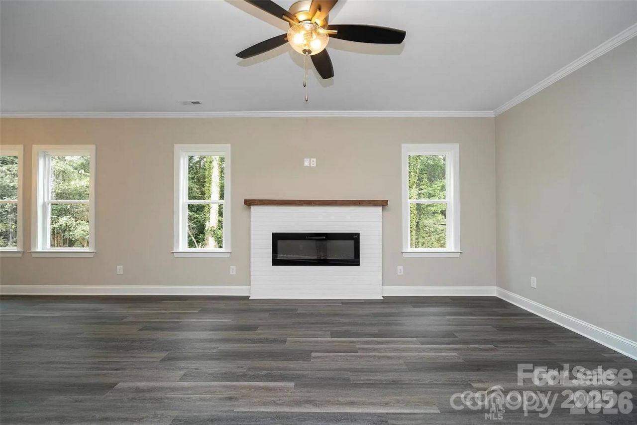 This stunning custom-built home sits on a spacious, nearly half-acre private lot and features an open floor plan designed for both entertaining and everyday living. The Family Room, Kitchen, and Dining Area flow seamlessly together, creating a bright and inviting space filled with natural light. The Family Room boasts a cozy fireplace with a hand-selected sawn maple beam and V-groove board surround, adding warmth and character. The expansive Kitchen is a chef's dream, featuring quartz countertops, an oversized island, abundant cabinetry, ample counter space, and a separate walk-in pantry. The generous Owner's Suite includes a luxurious bath with dual vanities topped with quartz, a large walk-in shower, a spacious walk-in closet, and a separate linen closet. Additional highlights include: Two extra storage closets A functional drop zone area A dedicated Laundry Room with upper cabinets A large deck overlooking a private, wooded backyard.
