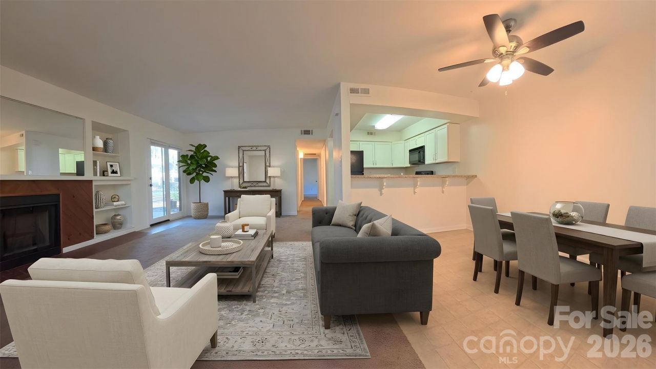 Unlock an incredible investment opportunity with this main level corner unit, perfectly situated just minutes from Uptown and the airport! Enjoy convenient access to parks, public transportation, a variety of restaurants, and shopping. This condo is primed for success, with recent updates that make it a standout choice. A brand-new HVAC system and hot water heater ensure comfort and reliability for the future homeowner. The open living room is bright and inviting, featuring a cozy built-in fireplace, and seamlessly connects to the dining area and your own exterior patio?perfect for entertaining! Down the hallway, you'll find a spacious secondary bedroom, a full bathroom, and a primary suite complete with a generous walk-in closet and a private en-suite bathroom. This condo is a smart addition to any investor's portfolio and a must-see!