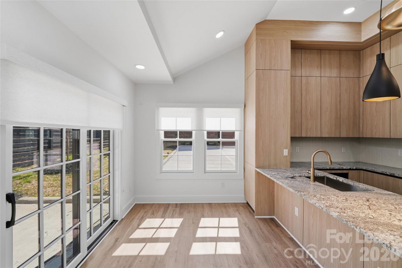 **Stunning new construction ADU** showcasing elevated design, refined finishes, and a light-filled modern aesthetic. Privately positioned behind a 3-bedroom main residence, this exceptional home is set within a fully enclosed property featuring a privacy fence and electronically gated entry, offering both exclusivity and security.Inside, the home is thoughtfully curated with soaring vaulted ceilings, skylights, and expansive windows that flood the interiors with natural light. The open-concept layout creates a seamless flow between the living, dining, and kitchen spaces?ideal for both sophisticated entertaining and everyday comfort.The chef's kitchen is a true showpiece, appointed with sleek European cabinetry with integrated rope lighting, designer pendant lighting, stainless steel GE Profile appliances, and a spacious island overlooking the main living area. The great room is anchored by a striking contemporary electric crystal fireplace with tile surround to the ceiling, complemented by vaulted ceilings, skylights, and a ceiling fan for a bright yet inviting atmosphere.The **primary suite is a private retreat**, featuring ceiling fan and a wall of windows overlooking the serene, wooded, fenced rear yard. A walk-in closet provides ample storage, while the spa-inspired bath offers dual sinks, granite countertops, a tile surround frameless glass shower. Designed with both function and style in mind, the home also includes multiple closets for additional storage and several access points to the outdoors, enhancing the indoor-outdoor lifestyle, custom high end window shades and elegant champagne gold fixtures throughout.With its clean architectural lines, designer finishes, and private gated setting, this residence delivers a rare combination of luxury, comfort, and modern living. Ideally located just minutes from South End, Uptown Charlotte, the Rail Trail, top dining, shopping, and entertainment?and within walking distance to Abbott Neighborhood Park featuring tennis courts, basketball courts, and a playground?this home delivers a true luxury lifestyle in one of Charlotte's most desirable neighborhoods. Landscaping to be maintained by owner. This ADU is located behind a 3/2 luxury rental home MLS#4360020 which is also available for rent.
