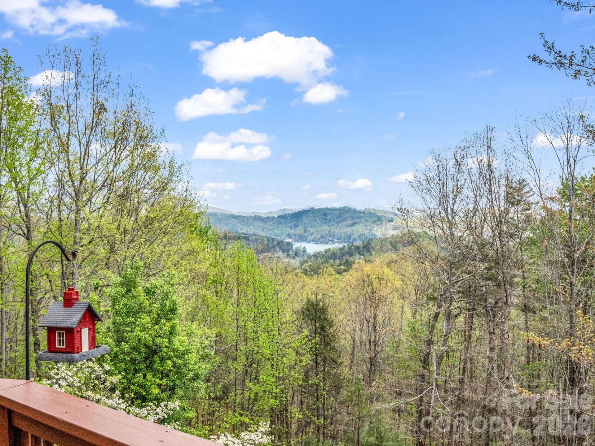 On a sprawling 3.87-acre estate that directly abuts the pristine wilderness of Chimney Rock State Park, this entry-level Lake Lure home offers a rare combination of total privacy and prime accessibility. Just 1.5 miles from downtown Lake Lure, you are only minutes from the town's iconic beach, Morse Park, and local dining, allowing you to enjoy the vibrant lake lifestyle while retreating to your quiet sanctuary at end of the day. The residence features a welcoming exterior with stone accents and a spacious gravel drive that complements its natural surroundings. Outdoor living is a cornerstone of this property, highlighted by an expansive back decks and a screened-in porch that offers stunning long-range mountain and Lake Lure views. Inside, the home opens into a bright and airy living space characterized by vaulted ceilings and warm hardwood floors. The open-concept layout seamlessly integrates the kitchen, dining, and living areas, creating an inviting environment for relaxation or entertaining. Large windows throughout the home frame the lush greenery, bringing the beauty of the Blue Ridge Mountains indoors. Designed for effortless main-level living, this home features primary and guest suites on the first floor for ultimate convenience. The lower level expands into a private sanctuary, offering a sprawling den, a full bath, and a versatile bonus room ideal for a professional home office or creative studio. Go out onto the secluded lower deck to experience a space that feels like an independent retreat. Whether you are looking for a manageable full-time residence or a peaceful vacation getaway, this property provides the ultimate mountain retreat without sacrificing convenience of being close to town. New roof in 2024 and decks stained in 2025. Some furniture will convey with acceptable offer.