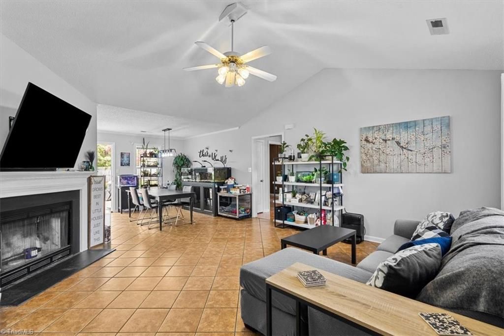 Charming home both inside and out! Wonderful open floorplan with split bedroom layout. Living room features vaulted ceilings, wood burning fireplace and tile throughout and into the formal dining room. Private, fenced backyard with a large brick patio???great for relaxing or entertaining.Recent updates; high efficiency HVAC system with HEPA filers and UV light, water heater and electrical panel