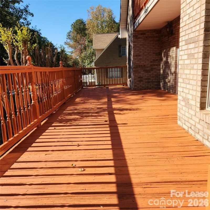 Two story brick A frame home with large private fenced backyard near The Pointe in Mooresville! Hardwoods downstairs with bedroom and full bath downstairs. The Primary Bedroom Suite upstairs has a walk out balcony. Large kitchen. All new flooring throughout, fresh paint, fresh stain on the deck. Tenant is responsible for all utilities and lawn maintenance. No Smoking and Pets are conditional with a non-refundable pet fee. This rental can be available one week from an approved application!
