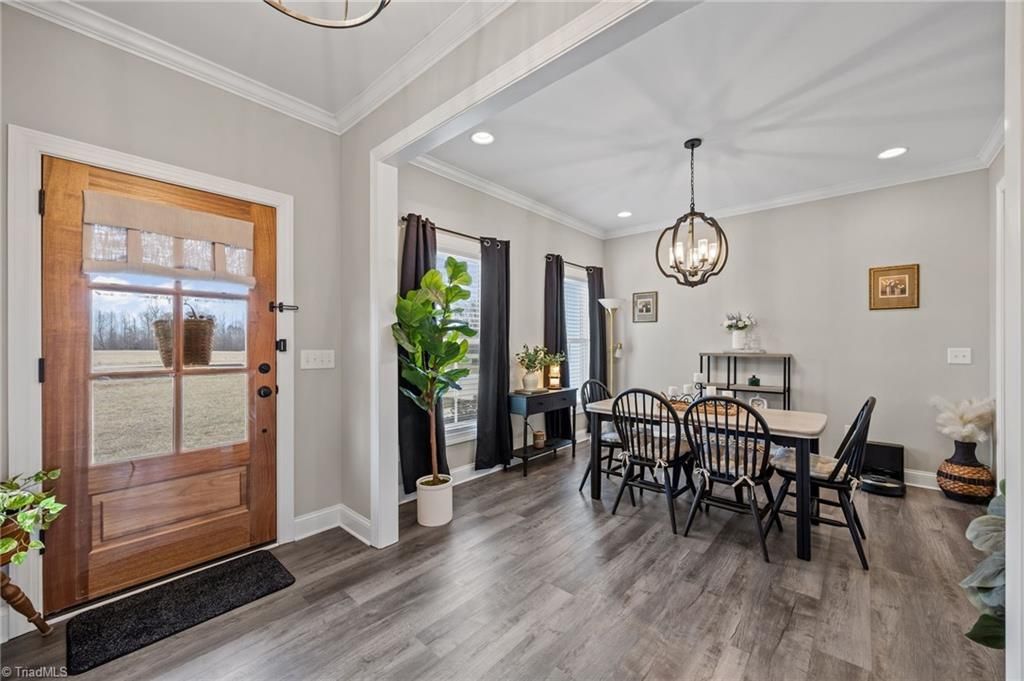Beautifully maintained & thoughtfully designed one-level living, this 3BR/2BA home offers a spacious, split bedroom layout w/elevated finishes throughout. The primary suite features two separate vanities w/granite countertops, walk-in tile shower, & a generous WIC. A spacious laundry room & oversized walk-in pantry provide exceptional everyday convenience. The kitchen has a huge center island w/granite tops & soft close cabinets. Elegant crown molding & luxury vinyl plank flooring run throughout the home. Step outside to a covered porch, patio with pergola, and fenced yard w/views of the neighboring farm and pond. A standout feature is the detached, climate-controlled ???man cave??? shed, complete with electricity, PTAC heating & cooling system, & TV wiring for a gym, office, or retreat. Additional upgrades include a conditioned crawlspace, central vac, wired security, floor outlets, and an oversized 2-car garage w/pull-down stairs to lots of attic storage.