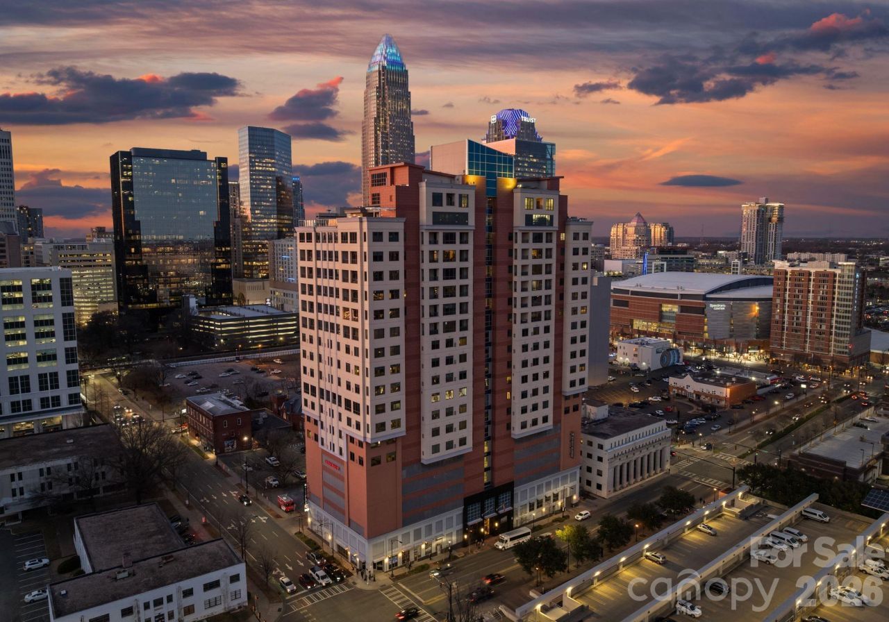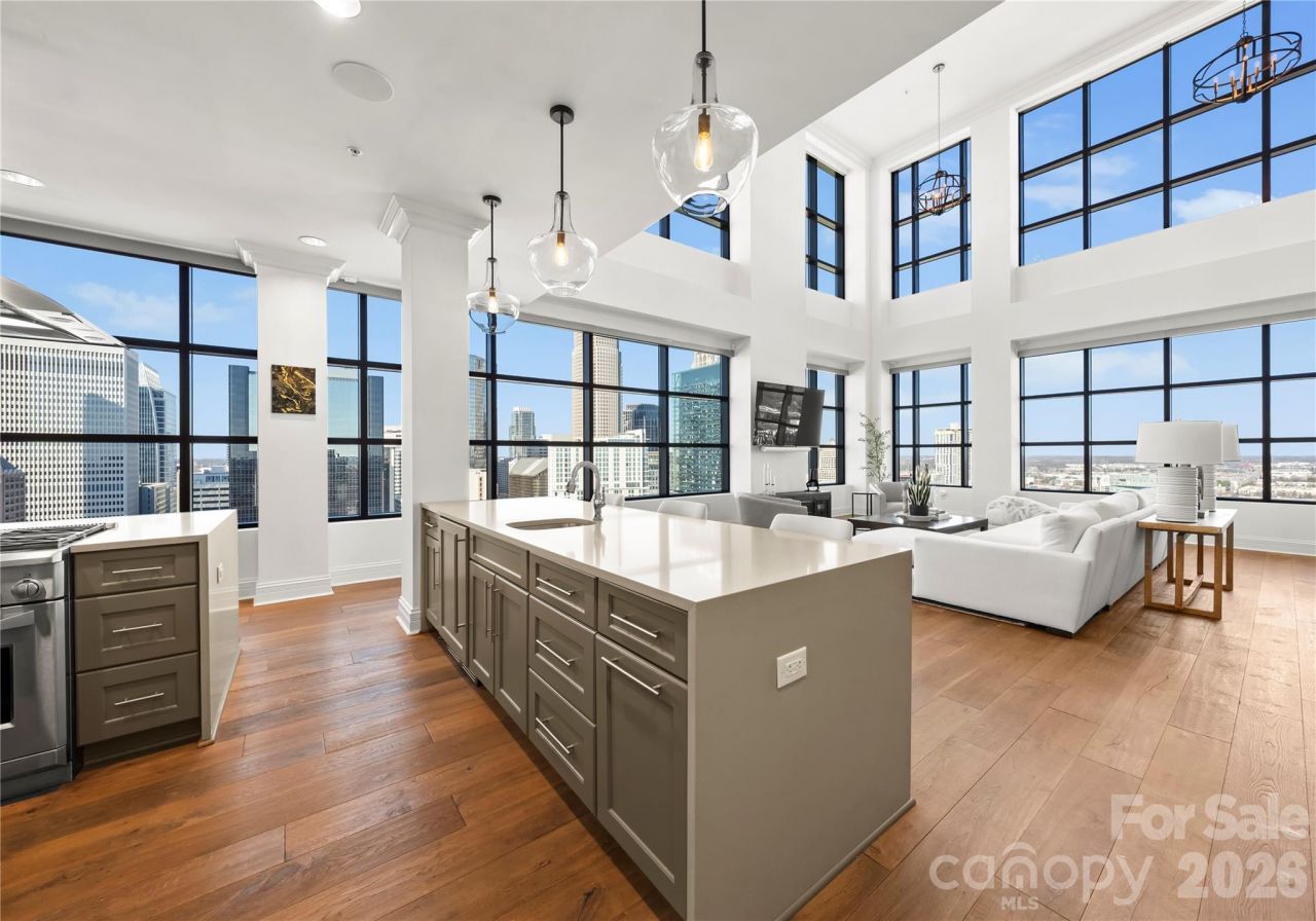 Rising high above the energy of Uptown Charlotte on the 22nd floor of the iconic SKYE Condominiums, Residence 2203 delivers a true city-in-the-sky lifestyle?where panoramic skyline views, walkable convenience, and luxury high-rise living converge in one unforgettable address. Spanning over 4,000 square feet across two levels, this expansive 3-bedroom, 3.5-bath residence lives like a penthouse, offering a rare blend of scale, architectural drama, and separation of spaces?complete with front-row views overlooking the Spectrum Center and Uptown's most recognizable skyline corridors. From the moment you enter, the home's presence is undeniable. A dramatic two-story living space framed by expansive windows brings the city into the room?bright and inspiring by day, and dazzling at night. The open-concept design flows seamlessly through the great room, dining area, and chef's kitchen, creating an ideal setting for elevated entertaining and effortless everyday living. The kitchen is both beautiful and functional with gas cooking, stone surfaces, a generous center island, premium appliances, and custom cabinetry?anchored by a wet bar and wine refrigerator that elevate the entertaining experience whether you're hosting a gathering or enjoying a quiet evening in. The main level offers flexible guest accommodations and well-appointed baths, while the upper level serves as a private retreat. An impressive primary suite is complemented by a loft that overlooks the dramatic living area below?enhancing the home's vertical volume while offering privacy and a true sense of arrival. Balcony and terrace access extend the living experience outdoors, creating the perfect backdrop for morning coffee, sunset views, or pre-event evenings with the city lights sparkling below. SKYE is renowned for amenities that rival boutique hotels while maintaining a private residential feel?featuring a private rooftop terrace with pool and skyline views, an on-site rooftop restaurant (Fahrenheit) with dining high above the city, a fitness center with cardio and strength equipment, and resident spaces including a theater room, club room, and game room. Secure garage parking, controlled access, and building services complete the luxury high-rise experience. Location is everything?and SKYE's South Caldwell Street address places you in the center of Uptown's entertainment and cultural district. Spectrum Center is just steps away, while Bank of America Stadium, Truist Field, and the Charlotte Convention Center are all within easy walking distance. Enjoy quick access to some of Uptown's favorite dining and nightlife destinations, including Fahrenheit (in-building), Coquette, Aria Tuscan Grill, and McCormick & Schmick's, along with the Blumenthal Performing Arts Center and Uptown's most active social scene. For frequent travelers, Charlotte Douglas International Airport is approximately 15?20 minutes away, offering seamless access for business and lei