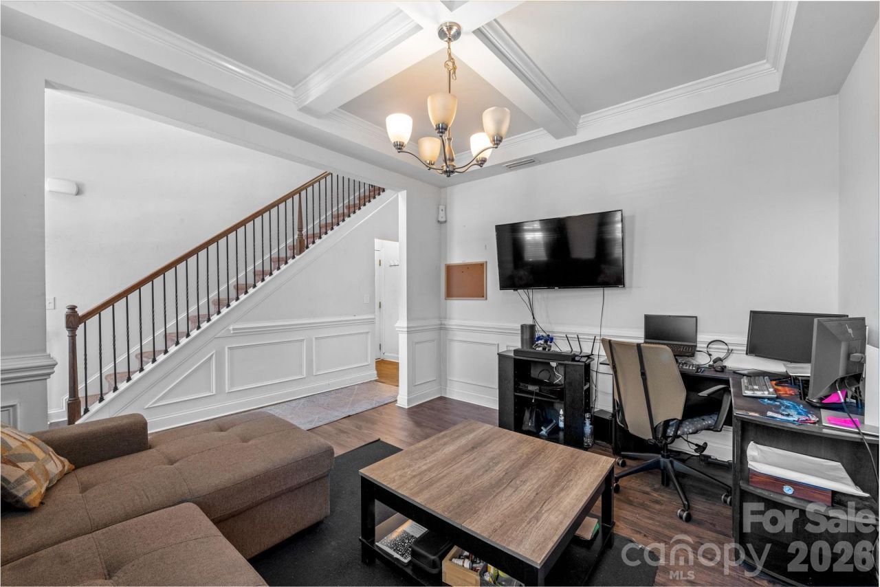 Beautiful 5-bedroom, 4-bath home with a spacious and functional layout. The main level features 9-foot ceilings, a coffered ceiling in the office/flex space, and a chef-style kitchen with granite countertops, stainless steel appliances, gas cooktop, and double ovens, opening to a large family room with a gas fireplace.The main floor includes a bedroom, full bathroom, and dedicated office/flex space.Upstairs, the primary suite, walk-in closet, and spa-like bath. An additional bedroom features its own private ensuite bathroom, along with another 2 bedrooms, full bath, and laundry room.Enjoy a resort-style community with pool, water slide, volleyball area, and park. Conveniently located near I-485, Charlotte Douglas Airport, and Uptown, with shopping and dining nearby.