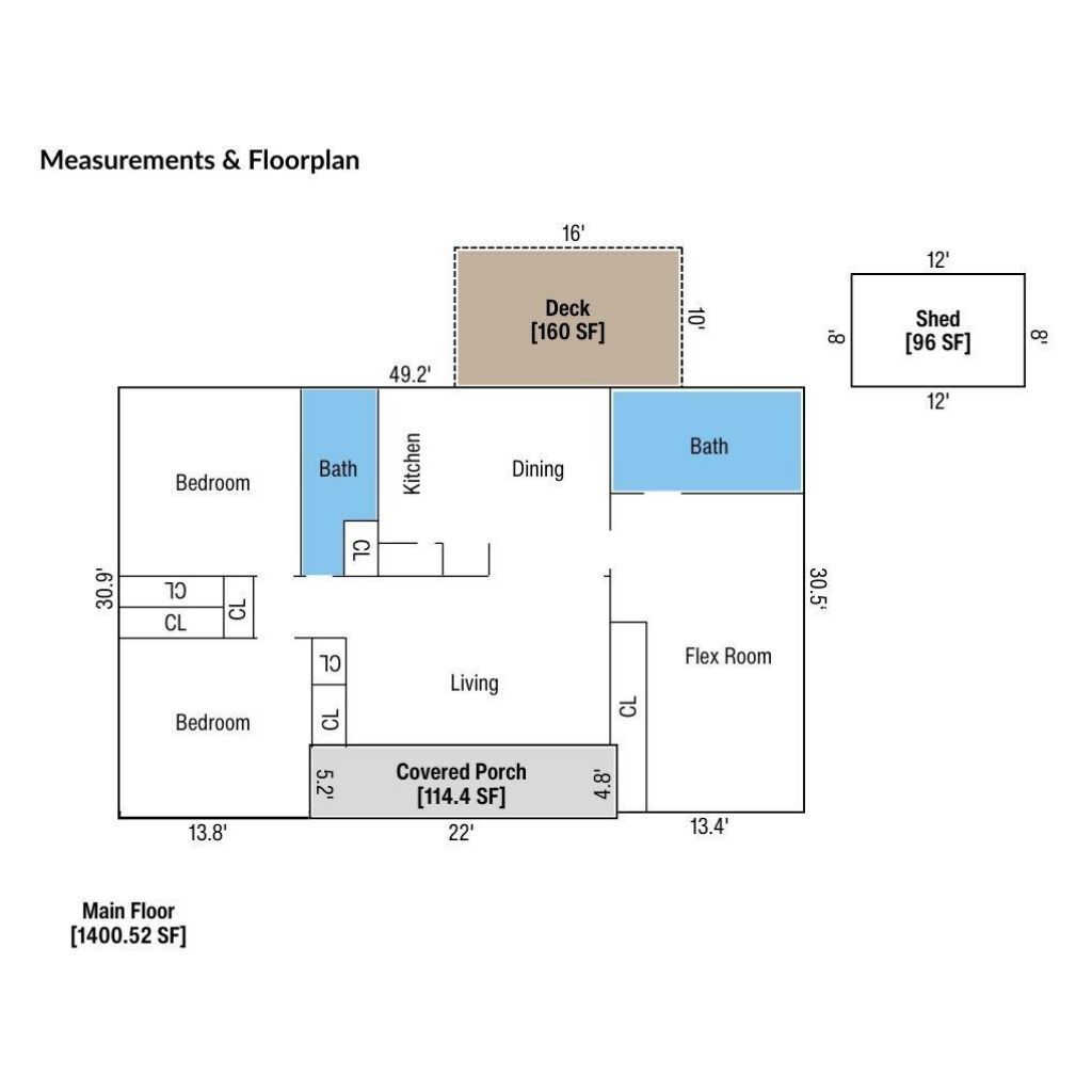 Move-in ready with thoughtful improvements throughout! Beautifully refreshed 2-bedroom, 2-bathroom gem, perfectly located just 5 minutes from I-85. This home boasts significant upgrades, including a flex room and second full bath, currently serving as a private primary suite. Home features include a modern kitchen with bright white cabinets paired with sleek granite countertops and a versatile floor plan with two bedrooms and a full hall bath. An extended back deck off the dining area overlooks a backyard fenced on three sides with mature shrubbery for added privacy.