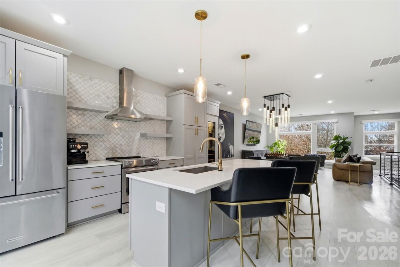 Experience refined urban living in this modern, luxurious 3 bedroom/3.5 bath townhome ideally positioned in the heart of sought-after South End. Thoughtfully designed across four levels, this residence is crowned by a private rooftop terrace, offering an exceptional setting for outdoor entertaining or quiet evenings above it all. Enjoy unparalleled convenience just blocks from South End's acclaimed restaurants, breweries, boutiques, everyday conveniences and the Light Rail, offering effortless access to Uptown and beyond. The lower level welcomes you with a spacious tandem two-car garage, complete with a functional drop zone and a versatile bedroom or office, perfect for whatever your lifestyle needs! The main living level is an entertainer's dream, featuring an open-concept layout anchored by a stunning chef's kitchen with an oversized island, high-end stainless steel appliances, quartz countertops and abundant custom cabinetry. Seamlessly flowing into the dining and living areas, this space is ideal for hosting gatherings, pre-game entertaining or relaxed evenings at home. Upstairs, two generously sized bedrooms include a serene primary suite with a spa-inspired en-suite bath. The fourth level reveals a show-stopping rooftop terrace, offering an elevated outdoor living experience with sweeping views plus storage. Residents also enjoy access to a community dog park, completing this exceptional South End offering!