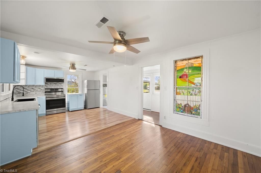 Charming brick farmhouse set against views of Pilot Mountain and the Sauratown range. Inside, youâ??ll find a primary suite with bath and a spacious walk-in closet. The kitchen and dining area flow together easily, featuring a smooth cooktop, built-in microwave, and pantry. Thereâ??s a nice balance of old and updated hereâ??renovated bathrooms paired with original hardwood floors through much of the home. Upstairs, two finished attic rooms add about 300 square feet of flexible space (not counted in heated square footage), ideal for whatever you need next. The property offers generous outdoor space with garden areas, fruit trees, and two outbuildings. A recently constructed two-car garage includes a heated workspace with a separate entrance, ideal for a home office, studio, fitness area, or other needs. A well-rounded property that blends scenic surroundings, usable space, and thoughtful updates. Convenient to Highway 52 and a 20-minute drive to Winston Salem.