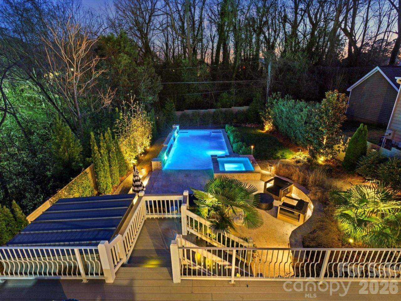 Resort-Style Private Retreat Minutes from Uptown CharlotteDiscover a rare offering?an exceptional custom-built residence that delivers modern sophistication, luxurious outdoor living, and unmatched privacy, all while being just moments from Uptown, NoDa, and Plaza Midwood. Surrounded by mature trees and set back from the street, this home provides a secluded, resort-like atmosphere in one of Charlotte's most desirable urban locations. Designed with intention and crafted with premium finishes, this fully upgraded smart home blends everyday comfort with high-end living. Thoughtful technology, designer selections, and a spacious, flowing layout make the home ideal for both relaxed living and effortless entertaining. The outdoor spaces are truly standout features. A heated and chilled saltwater pool with integrated spa and waterfall creates a stunning focal point, complemented by expansive terraces, multiple outdoor living areas, a screened porch, Trex deck, and beautifully landscaped grounds with custom lighting. A dedicated pool bath with shower adds year-round convenience. Inside, the main level offers an entertainer's kitchen with granite countertops, a wet bar with beverage refrigerator, a large dining area, and a warm, inviting great room with fireplace. A first-floor bedroom and private office provide flexible living options. Whole-home smart surround sound enhances both daily living and hosting. Upstairs, the luxurious primary suite includes a custom walk-in closet and a private terrace?perfect for morning coffee or unwinding at sunset. This level also features a kitchenette, spacious laundry room, and two additional bedrooms. A rare combination of privacy, design, and location, this home lives like a personal resort in the heart of Charlotte.