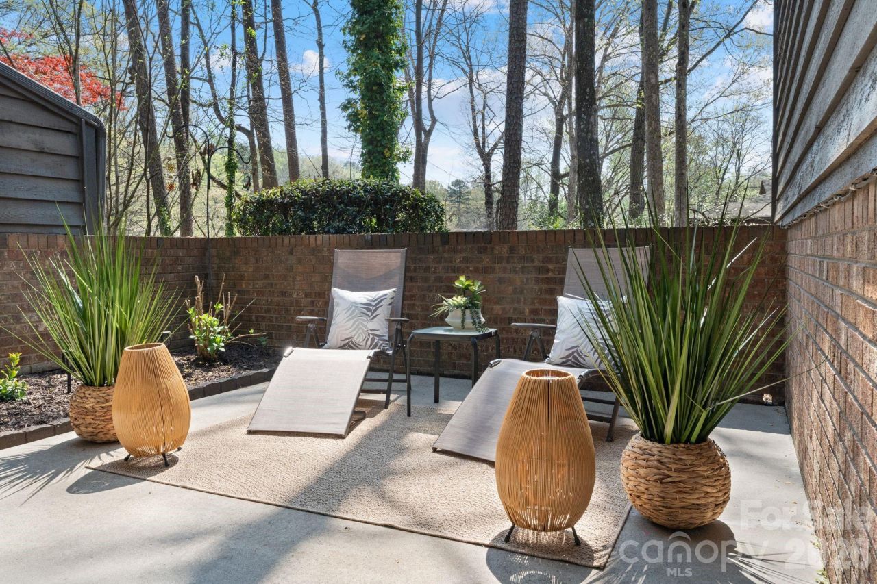 Located along sought-after Colony Rd, this updated 2-bedroom, 2-bath ground-level condo offers exceptional convenience and is within walking distance to Phillips Place and Whole Foods, surrounded by some of Charlotte's most established neighborhoods.The interior is move-in ready and freshly painted, with major updates including new living room flooring and bedroom carpet (2024), and a full renovation of the kitchen and bathrooms, new floor tiles, and HVAC system completed in 2019.Enjoy a private patio overlooking the community green space?an ideal extension of the living area that brings in natural light and a peaceful setting.This unit also includes #2 dedicated parking spaces, a valuable feature that adds both convenience and long-term appeal.Community amenities include pool and tennis courts. No rental cap makes this a strong option for both investors and owner-occupants. HOA also includes water-sewer, trash, landscaping, pest control, exterior maintenance.Clean, updated, and ready for immediate occupancy?opportunities like this in this location move quickly.