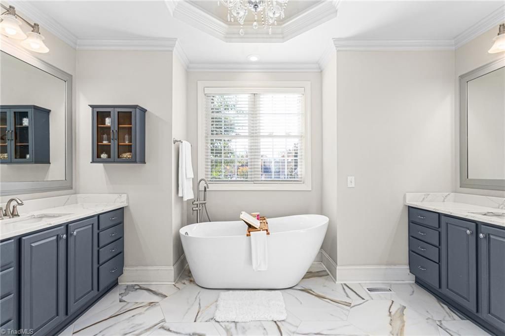 Stunning custom-built 2-story home sits on a cul-de-sac in the wonderful Waterford community! This 5BR/3BA home has it all: a 2 car garage and an open floor plan with an updated gourmet kitchen featuring a gas range, wall oven, microwave, pantry and a large quartz island. All baths and laundry have quartz countertops, hardwood floors in main living spaces downstairs, a two-story living room with a stone fireplace and a formal dining room with beautiful moldings. Main-level primary suite with vaulted ceiling, walk-in closet and a spa-like en-suite featuring heated marble floors, dual vanities, stand-alone tub, and walk-in shower. A guest bedroom and full bath complete the first floor. Upstairs includes 3 bedrooms, a bonus room, and a full bath. Enjoy the fenced backyard, manicured lawn and patio ??? perfect for entertaining! Waterford offers a neighborhood pool and is convenient to shopping and highways. Come see this gem for yourself!