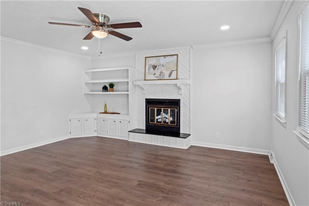 Welcome home to this charming 3BR/2BA Cape Cod style home conveniently located near dining, shopping, and major highways. The main level features new LVP flooring and neutral paint throughout. It includes a cozy living room with a gas log fireplace and built-in bookcases, as well as a spacious eat-in kitchen equipped with granite countertops and stainless-steel appliances. The large main-level primary bedroom boasts an incredible walk-in closet, and the main-level bath features a double vanity and tile tub/shower. For your convenience, the spacious laundry room includes a washer and dryer that convey with the home. The upper level offers two additional bedrooms and an updated hall bath with a designer vanity. Outside, you can enjoy your morning coffee on the oversized rear deck, which features a pergola overlooking a private, wooded backyard. Additionally, the home is zoned for highly sought-after schools and there's no HOA dues. You don't want to miss this one!