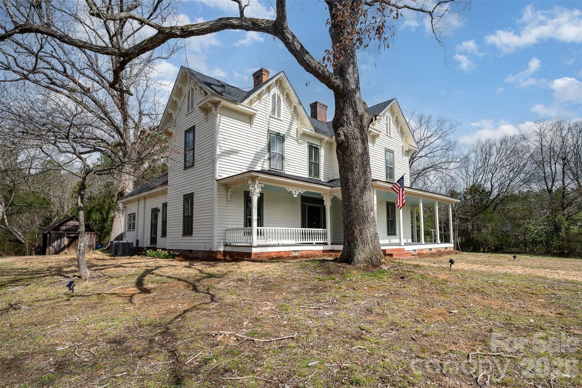 This charming 19th-century Victorian farmhouse, located near Lake Tillery, seamlessly combines historical charm with modern upgrades. Situated on a private 3.77-acre lot, this home features a picturesque wrap-around porch adorned with original doors and decorative trims. The property boasts additional historic structures including an active wellhouse, smokehouse, barn, and chicken house. The spacious backyard offers a peaceful, secluded retreat perfect for entertaining or simply enjoying the surroundings. Inside, original hardwood floors grace the main living areas and bedrooms, preserving the home's timeless character, while a newer dual-zone HVAC system and roof provide modern comfort and peace of mind. This home offers 5 bedrooms, though one bedroom does not include a closet. The property is also subject to protective historic covenants. Conveniently located near Piney Point Golf Course and the scenic shores of Lake Tillery, you'll enjoy easy access to local restaurants, a public boat ramp, and nearby storage facilities making it ideal for both full-time living or a weekend retreat.