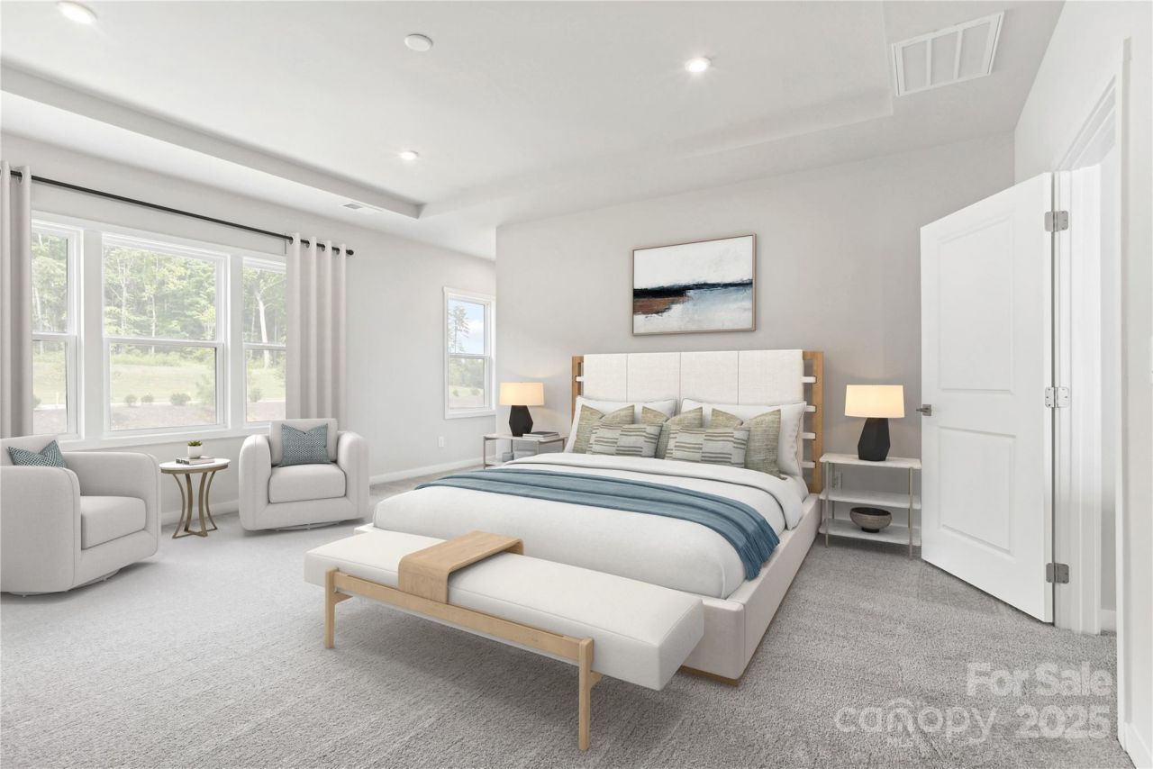 Huntersville's newest community! New Master Plan neighborhood featuring 357 single-family homes. Pool, clubhouse and walking trails that will connect to the Greenway. Great Shopping and restaurants nearby, quick access to I-77, I-85, and I-485, conveniently located to uptown Charlotte, Birkdale Village, and the Lake Norman Area. The inviting Woodrow II home design offers elegance and comfort. Its inviting front porch opens into a foyer hallway flanked by a versatile flex room. Well-lit by high windows, the expansive great room sets the stage for both relaxation and entertainment. Overlooking a casual dining area with access to the rear yard, the beautifully designed kitchen offers a center island, L-shaped counters and cabinets, and a walk-in pantry. The primary bedroom is a private sanctuary featuring a walk-in closet and a serene bath with a dual-sink vanity, a lavish soaking tub, a comfortable shower, and a private water closet. The second floor centers around a bright, open loft and includes a well-appointed secondary bedroom suite, two secondary bedrooms, and a thoughtfully designed hall bath with dual-sink vanity. Additional highlights include a first-floor office tucked away for added privacy, a powder room close to the main living area, centrally located laundry, and a two-car garage.