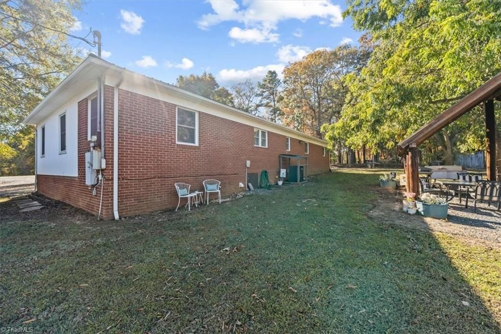 Beautiful brick Ranch in the countryside of Seagrove on 2+ acres. Love buildings?, check out the photos for all your building needs, including barn like building & 2 detached carports. Almost 2000 ft. living space, 3 bdrms, 1.5 ba & 2 living spaces. Living room cozy w/ natural light flowing in & closet renovated to add seating space and/or drop zone area. Kitchen very spacious w/ granite countertops, tons of cabinet & counter space w/ large dining room area w/ shiplap & farmhouse vibe. 2nd living area with separate entrance & laundry/utility room. Primary is spacious with accent wall. Oversized full bath w/ make up area & 1/2 ba always a plus. Backyard..your oasis w/ A frame rustic pavilion w/ water, sink & power. Makes for perfect gatherings.