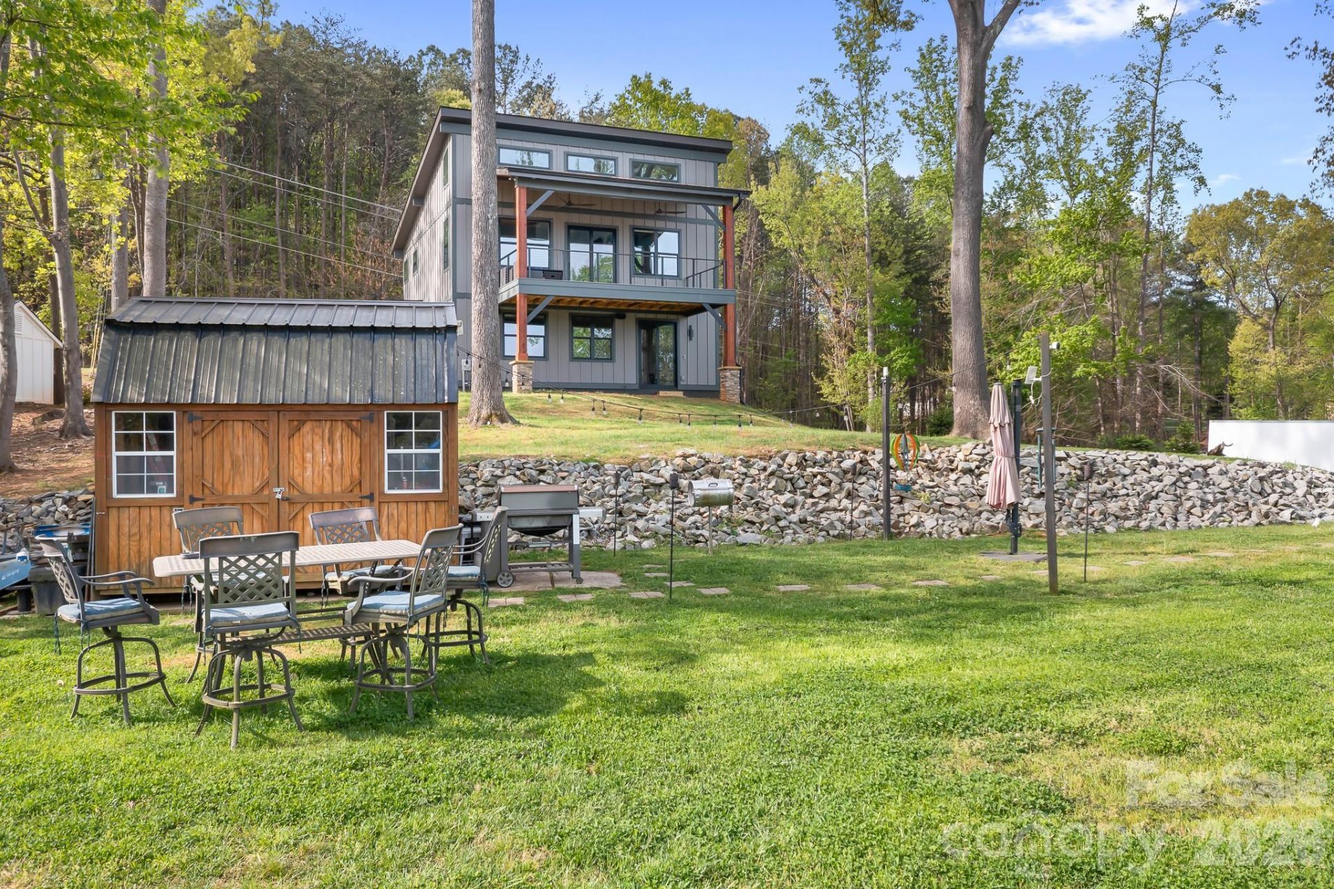 Price Improvement and ALL furnishings included for a turn key move in ready before the Memorial Holiday weekend and start living the Lake Norman life! Over 1 acre of Magnificent waterfront unrestricted land (NO HOA) with approx 217' of stabalized shoreline, a 40' covered fixed boatslip and additional floating dock. Build your future home while you live in the 2024 build secondary home with 2 bedrooms a dedicated office or you could use this as a 3rd bedroom and 2 car garage. No expense was spared during the construction. The complete Kitchen Aid appliance package, Additional holiday dishes can be stored in the hidden cabinets in front of the bar stools, Tankless propane water heater, Sono's sound system indoor and out, complete wifi home and wifi at the dock, Lake fed irrigation pump installed, Power at the dock for a future lift, Smart home wiring, Generator transfer switch installed, 30amp Electric car charger in the garage and so much more. You never have to worry if you have enough dock space for your friends and family. Enjoy every night sitting on your covered porch or on the covered dock with a seating area. Fall firepit nights with the peace and tranquility you have been searching for. Bring your own builder or have a chat with the builder that constructed this wonderful open floor plan contemporary home. Did we mention there is a former block boathouse that could be converted into a Jimmy Buffet style waterfront retreat. Long range waterfront views from the primary bedroom, great room, kitchen and home office. You can enjoy Lake Norman year round with deep water even when Duke energy brings the lake down during the winter months. You can realize what you have vizualized in your new construction home or just enjoy the current home and the lay of the level land. We've included a sample rendering of the primary home which was going to be constructed with the garage and front door on the street side with a wall of sliding glass doors for the bunk room, bathroom and hall. Basically flipping the garage level from back to front. To access the home office or could be used as a 3rd bedroom, enter throught the garage. Magnificent Waterfront views from the sliding glass door. Maximum building footprint is 50 x 60