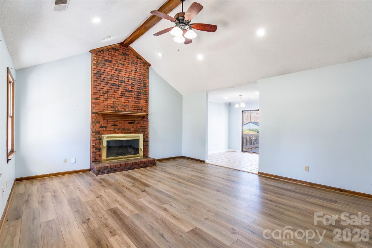 Charming brick and vinyl home with inviting front porch and great curb appeal. Inside, the great room features a vaulted ceiling and fireplace, creating a warm and open living space. The spacious eat-in kitchen is equipped with stainless steel appliances and a newly installed backsplash. The large vaulted primary suite offers a comfortable retreat. Enjoy outdoor living on the back deck with pergola overlooking a generous backyard?perfect for relaxing or entertaining.