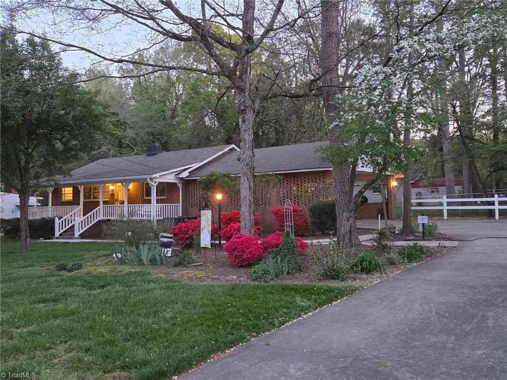 Beautiful mature yard feels like country living in city limits of quaint Gibsonville NC Brick Ranch w. 2 covered porches,2 +car attached carport. EIGHT rooms: 3 bedroom split plan,2 tiled baths,, hardwoods thru flowing floor plan w. Possible 4th bedroom off Kitchen & breakfast nook. Dining or Living room in front part of sun filled home. Large den w gas log fireplace w. Primary bedroom off den. Flex room 14.5x18??? w laundry , pantry, closet storage, etc Bonus room 250 sq ft w. separate exterior entrance. Fenced yard w wired workshop & + 2 storage sheds. Separate parcel with in the .77 acre could be sold separately as building lotHome is being sold with the building lot & all 3 parcels have separate tax Id (723 Dick/0102766 & 725 Dick/0102767 & 727 Dick/0102768
