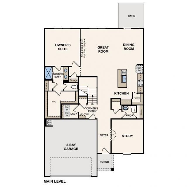 The Calderwood at Carpenter Farms offers two floors of comfortable living space, with a main-floor layout that's perfect for entertaining. Toward the front of the home, an additional bedroom and full bathroom is located right off the foyer. Beyond the foyer, a well-appointed kitchen?boasting a center island and corner pantry?looks over a great room and dining area with patio access. Additional main-floor highlights include a downstairs primary suite?with its own attached bath and expansive walk-in closet. Upstairs, you'll find a spacious game room?which you can option as a bonus room or additional secondary bedroom?a full bath, three secondary bedrooms and generous storage space.