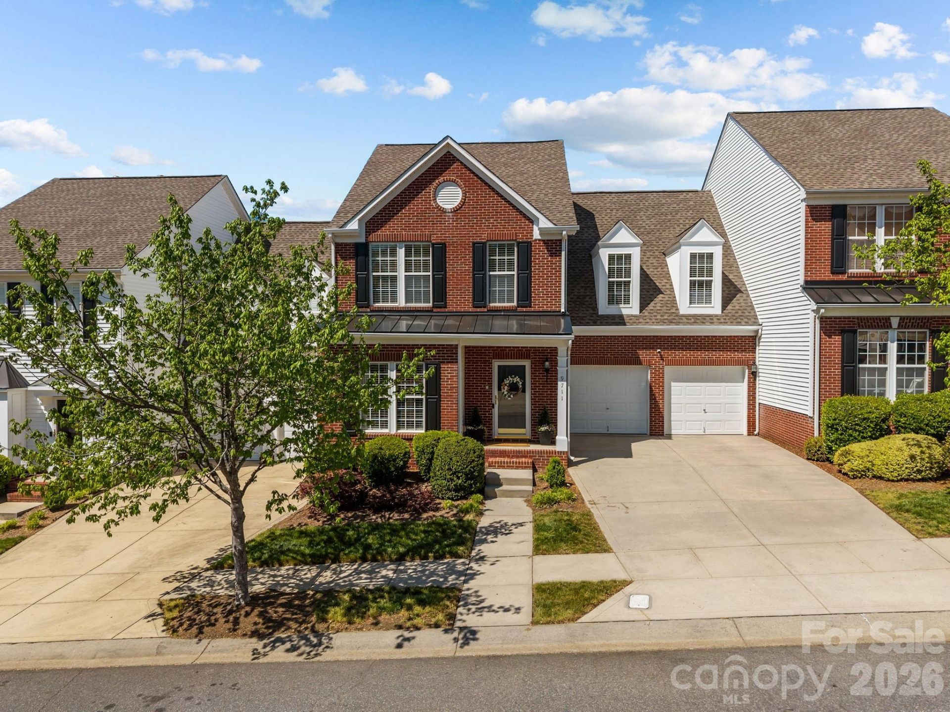 Welcome to 9711 Sunset Grove Drive in the highly sought-after Skybrook community of Huntersville. This beautifully maintained 3-bedroom, 3-bath townhome offers approximately 2,600 square feet of thoughtfully designed living space that truly lives like a single-family home. Step inside to an open, airy layout featuring soaring vaulted ceilings and abundant natural light throughout. The spacious main living area flows seamlessly into the dining and kitchen spaces, creating the perfect setting for both everyday living and entertaining. Large windows and elevated ceilings enhance the bright, inviting atmosphere that sets this home apart. Enjoy your own private back patio?ideal for morning coffee, evening relaxation, or hosting guests in a peaceful, secluded setting. With generous room sizes and a functional layout, this home offers the comfort and feel of a house?without the maintenance and upkeep that typically comes with one. Seller will cover 1 year of HOA dues with an acceptable offer. Resort style living just steps away from golf club and driving range. Spend your weekends relaxing instead of doing yard work w/exterior maintenance included front & back of townhome. Living without compromise?offering space, style, and an unbeatable location.