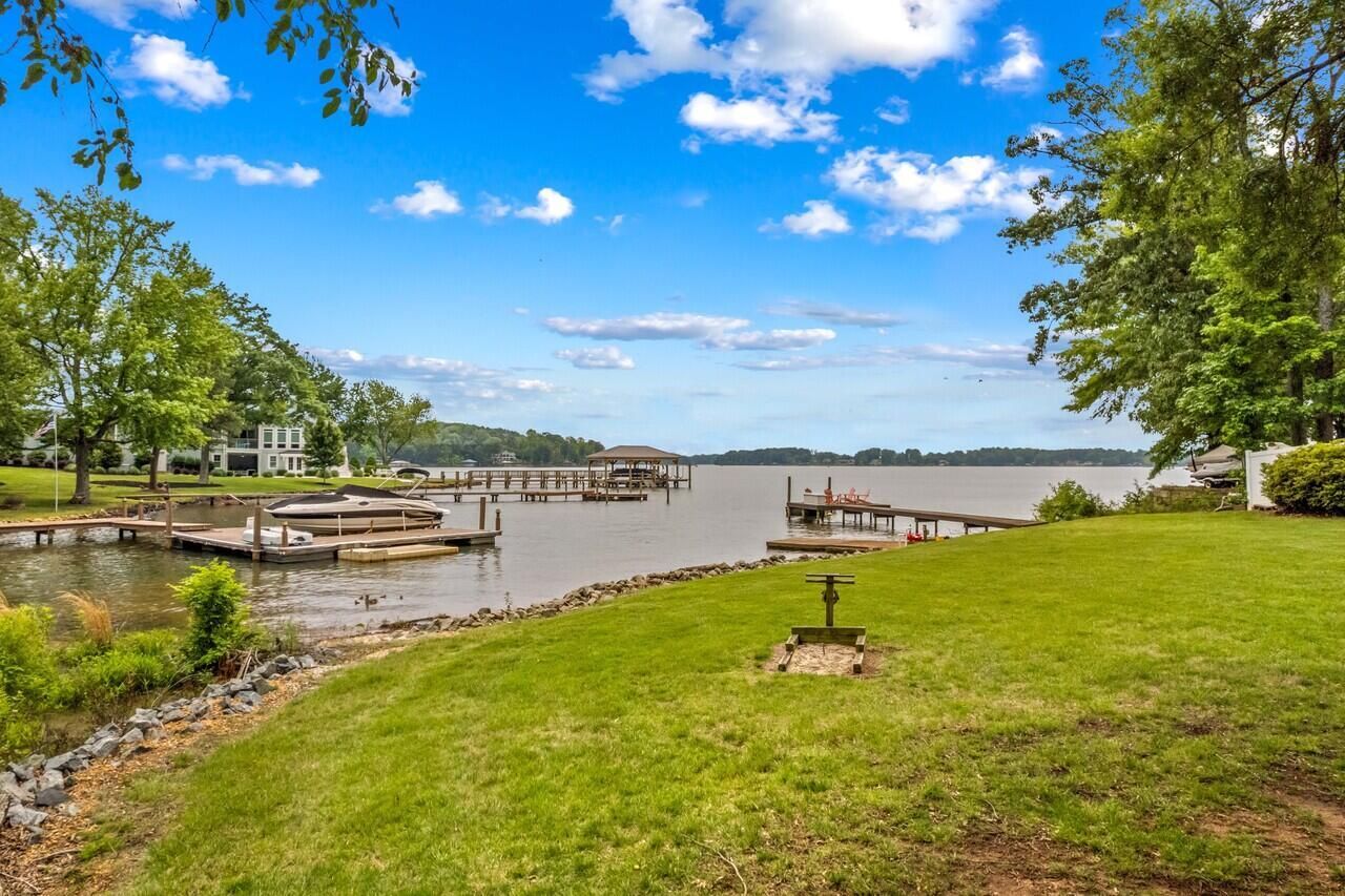 Out back, you'll find a private paradise: a massive 1,200 sq ft entertainment deck complete with rocking chairs, a built-in bar, and all the space you need to soak in the lake vibes from sunrise to starry night. Grill out on the front porch deck, play a game of horseshoes, or chill by the docks—one for your boat, and one for lazy afternoons with a glass of wine and a charcuterie board.